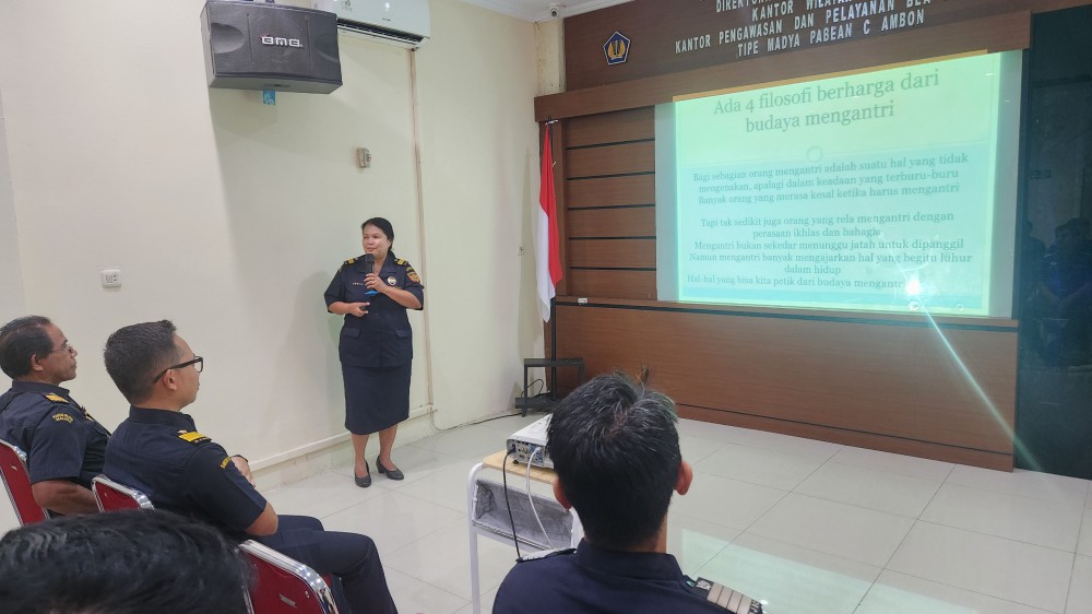 Ambon (14/5) – Bea Cukai Ambon kembali menggelar kegiatan Stori Par Bae pada Rabu (14/5) di Aula Masohi. Kegiatan ini menjadi ruang berbagi inspirasi dan nilai-nilai kehidupan bagi para pegawai. Kali ini, PBC Hesti menjadi pembicara dengan membawakan cerita bertema “Filosofi Budaya Antre.”
