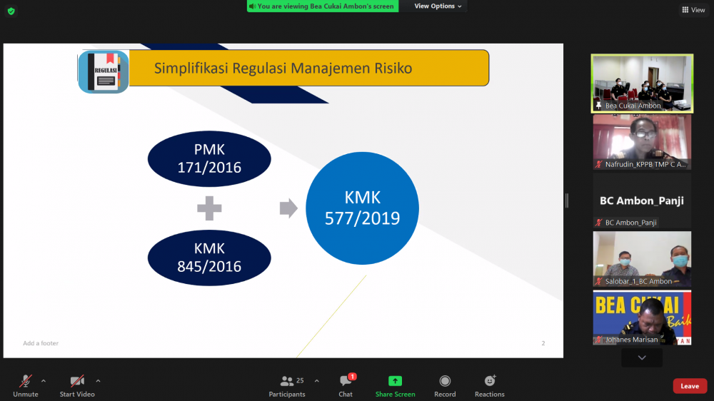 Ambon(23/09/2021) Dalam berorganisasi tentu banyak tantangan yang dihadapi entah dari segi eksternal maupun internal. Segala kemungkinan tersebut bisa saja terjadi dan berdampak pada organisasi. Kemungkinan-kemungkinan yang akan terjadi tersebut disebut dengan risiko. Lantas bagaimana cara memanajemen atau mengatur supaya risiko tersebut dapat diminimalisir? Jumat pagi Bea Cukai Ambon mengadakan in house training yang bertemakan “Identifikasi dan Analisa Risiko”.