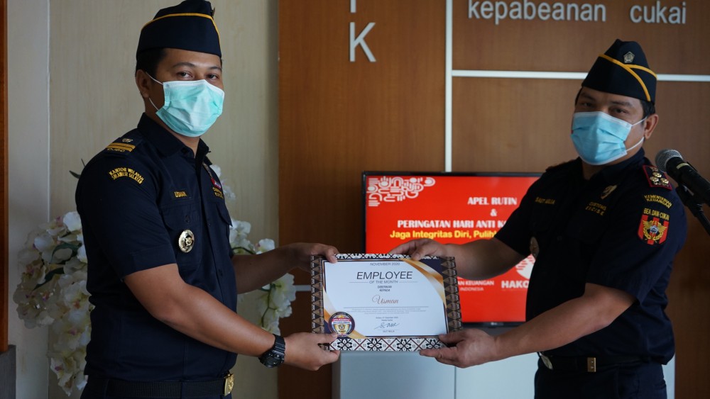 Dalam apel yang masih termasuk rangkaian pelaksanaan Hari Antikorupsi Dunia ini sekaligus disampaikan Employee of the Month bulan November. Adalah Usman, Pejabat Pemeriksa Bea dan Cukai Ahli Pertama. Diharapkan penghargaan ini menjadi motivasi pegawai lainnya agar menjadi lebih baik lagi setiap harinya.