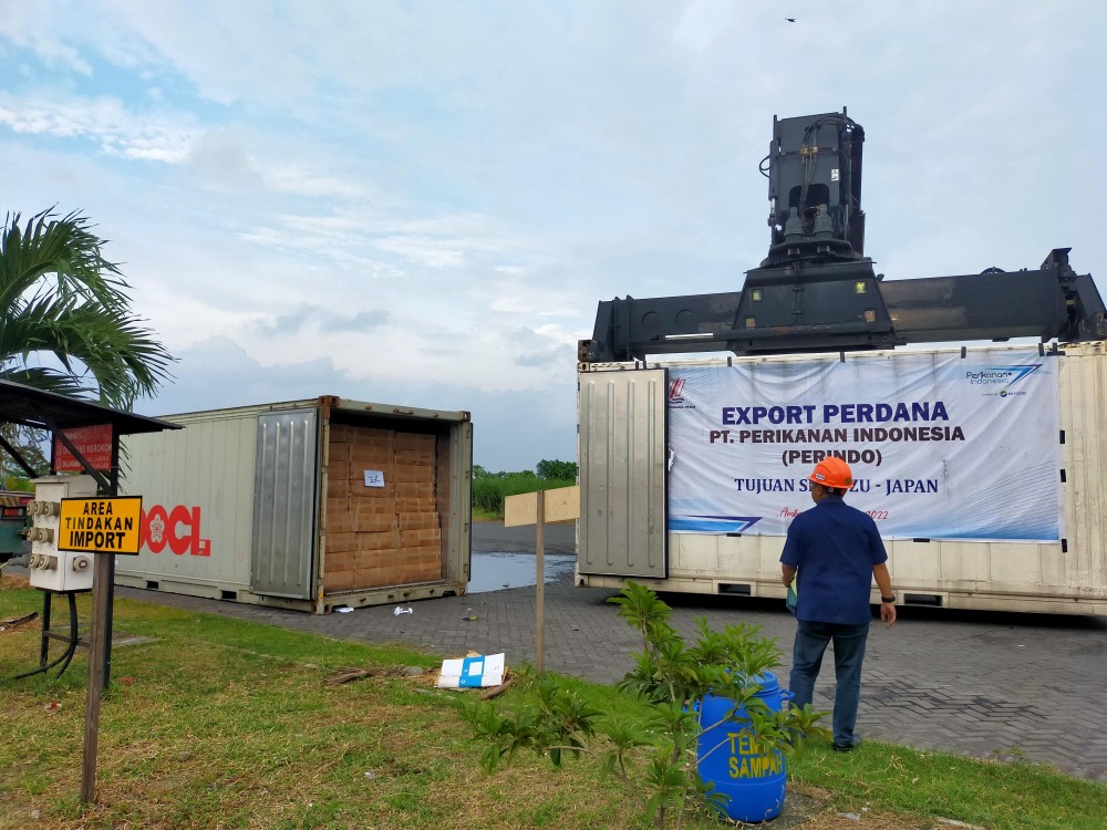 Dan untuk PT. Perikanan Indonesia (Perindo) ekspor perdana 10.278,51 kg Frozen Tuna Loin posisi pada tahapan untuk restuffing dari kontainer lokal ke kontainer internasional yang akan dilakukan pada instalasi karantina ikan BKIPM Surabaya di Puspa Agro Sidoarjo. Bea Cukai Ambon bekerjasama dengan Bea Cukai Tanjung Perak selalu bersinergi menjalin koordinasi untuk kelancaran proses tahapan di Surabaya baik mulai kapal Meratus Pariaman sandar, pergeseran kontainer, proses pengawasan restuffing maupun nanti saat kontainer internasional masuk ke kawasan pabean Tanjung Perak.