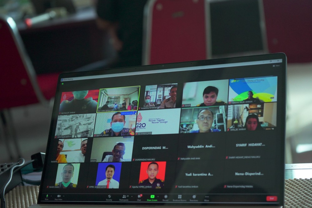 Rapat dilaksanakan secara daring, kali melibatkan lebih banyak pihak Bambang - Mulyanto PT. SDW sendiri yang di Kobi Seram maupun Jakarta, begitu pula Tim Dukung Bea Cukai Ambon dari Ambon sendiri juga dari Surabaya yang kebetulan sedang dalam tugas pendampingan pelaksanaan restuffing PT. Kamboti, Kokom PPJK PT. Sarana Antar Buana Express di Surabaya, Jefri PT. Prima Sejahtera Lines, Aris Hadiyanto Karantina Pertanian Kelas I Ambon, Syarief Disperindag Provinsi Maluku.