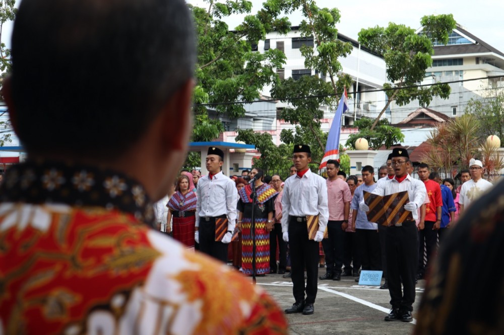 Pada kesempatan upacara hari ini, Finari manan selaku Kepala Perwakilan Kemenkeu Maluku menjadi pembina upacara. Tidak hanya itu semua pegawai kementerian keuangan menggunakan pakaian adat dari berbagai macam daerah yang melambangkan keragaman budaya Indonesia.
