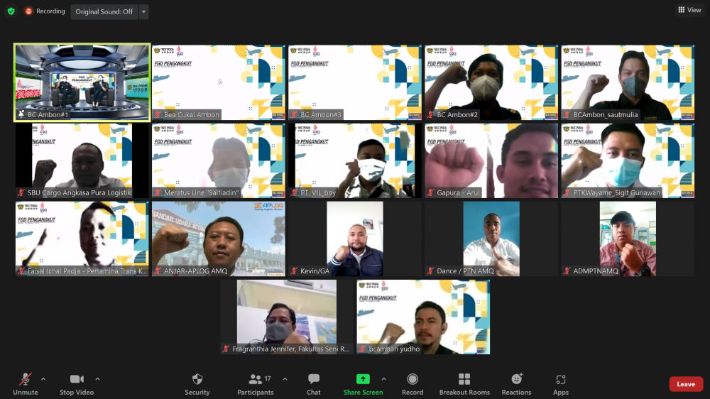 Pelaksanaan FGD kali ini, masih digelar secara daring guna mencegah penyebaran virus covid-19. Acara yang dibuka langsung oleh Kepala Kantor Bea Cukai Ambon, Saut Mulia. “Di samping menjalin tali silaturahmi dengan bapak bapak, acara ini juga dapat kita gunakan untuk merefresh kembali wawasan kita terhadap aturan khususnya terkait proses bisnis dalam pengangkutan”, terang Saut.