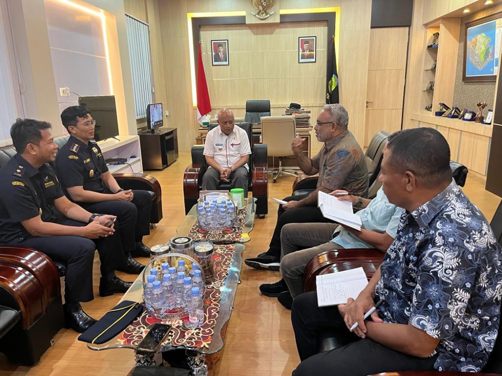 Buru (14/10/2022) Kamis pagi (13/10, kemarin-red) Ketua Tim Dukung Ekspor Bea Cukai Ambon M Yusuf Nasution mendampingi Kepala Kantor R. Teddy Laksmana beserta tim diterima dan ditemui langsung oleh Penjabat Bupati Buru Djalaludin Salampessy didampingi Kepala Dinas Perindustrian dan Perdagangan (Ivan Umasugi), Kepala Dinas Pemberdayaan Masyarakat Desa ( Effendi Latif), dan Sekretaris Dinas Koperasi dan UKM ( Rasyid Belasa) di ruang kerja Bupati Buru.