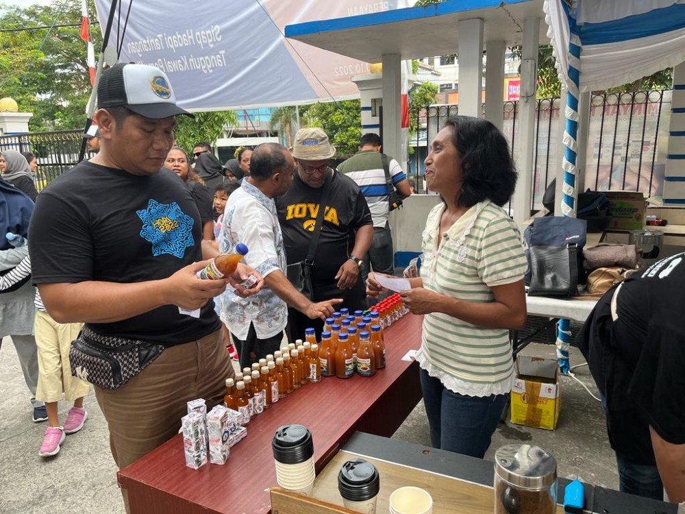 Ambon (30/10/22) Puncak acara peringatan Hari Oeang Republik Indonesia ke-76 yang diselenggarakan di lapangan parkir Gedung Keuangan Negara Ambon pada hari Sabtu (29/10), turut dimeriahkan dengan kegiatan Bazaar UMKM Binaan setiap satker dibawah Kementerian Keuangan Provinsi Maluku dan beberapa Bank Himbara (Himpunan Bank Milik Negara).