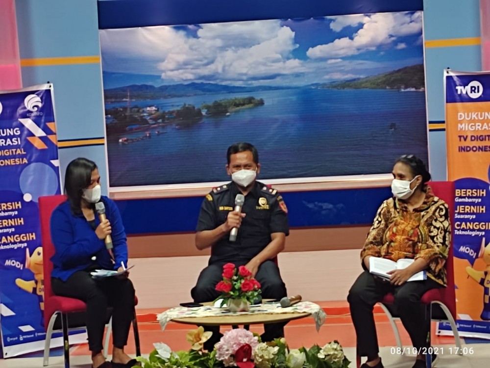 Ambon(10/10/2021) – Bea Cukai Ambon mendapat kehormatan sebagai salah satu narasumber dalam program acara “Maluku Bicara” (Jumat lalu -red) dengan topik “Tingkatkan Ekspor via Tol Laut” di TVRI Stasiun Maluku, Gunung Nona Ambon. Ini merupakan kesempatan Bea Cukai untuk terus memberikan pemahaman terkait ekspor kepada masyarakat Maluku.