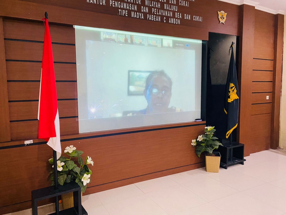 Ambon (10/08/2022) Pagi ini PBC Nafrudin mendapatkan tugas untuk membawakan stori par bae. Walaupun sedang menjalani tugas dinas luar di Pulau Buru, tidak menyurutkan semangat Nafrudin untuk memberikan stori par bae lewat Zoom.