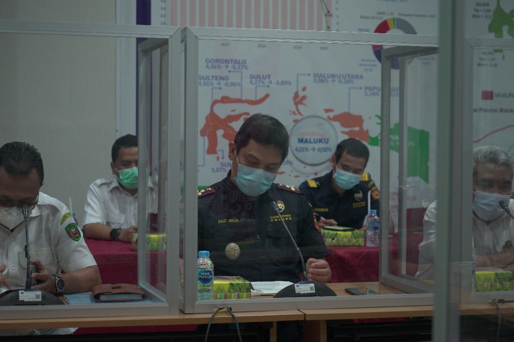 Ambon (03/02/2021)- Hari Rabu bertempat di Kantor Perwakilan Bank Indonesia Provinsi Maluku diadakan Rapat Koordinasi Mendorong Ekspor Perikanan Maluku. Dihadiri langsung oleh Kakanwil Bea Cukai Maluku Erwin Situmorang, Kepala Dinas Perindustrian dan Perdagangan Provinsi Maluku Elvis Pattiselano, Kepala BKIPM Ashari Syarief, Kepala Kantor Bea Cukai Ambon Saut Mulia, Asisten Tiga Gubernur Provinsi Maluku dan Pejabat-Pejabat lainnya. Rapat dilaksanakan pada pukul 14.00 WIT di ruang rapat Bank Indonesia Provinsi Maluku.