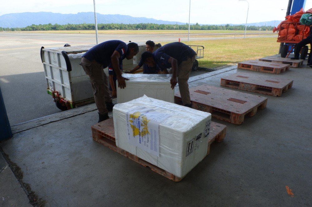 Ambon (4/12) Bea Cukai Ambon masih terus mencari dan mengembangkan potensi daerah untuk kesejahteraan masyarakatnya, seperti kali ini, lagi-lagi Bea Cukai Ambon memfasilitasi PT. Rajawali Laut Timur dalam melakukan ekspor perdana Ikan Kerapu Hidup ( Liev Grouper) sebanyak 50 box-375 pcs dengan total berat 350 kg dengan negara tujuan Hongkong melalui Bandara Internasional Pattimura Ambon.