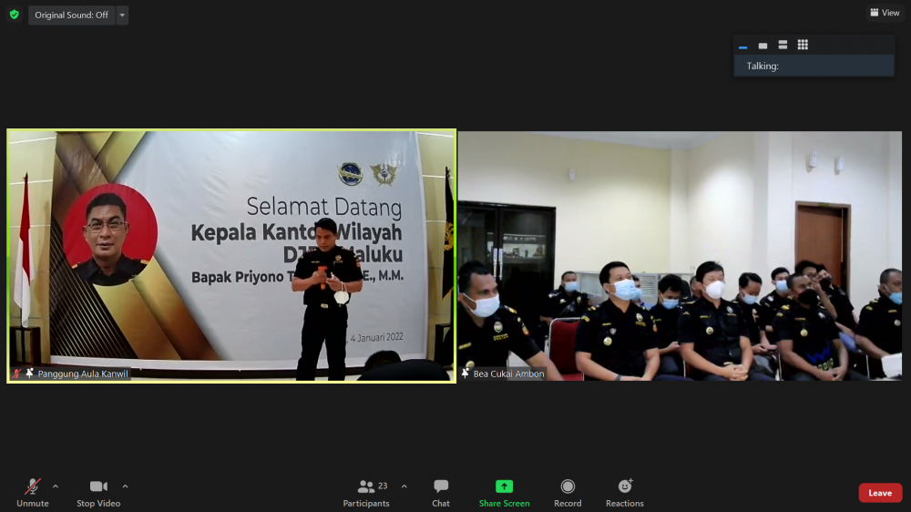 Ambon(04/01/2022) Selasa sore ada yang berbeda di Kantor Wilayah Bea Cukai Maluku. Karena ada sosok baru yang menjabat sebagai Kepala Kantor Wilayah Bea Cukai Maluku, beliau adalah Priyono Triatmojo, S.E., M.M. Di kesempatan yang berbahagia ini, Kakanwil baru menyapa seluruh jajaran pejabat dan pegawai di lingkungan Kanwil Bea Cukai Maluku.