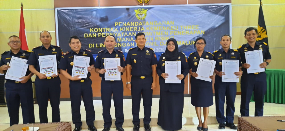 Selasa, 28 Januari 2020 bertempat di Aula Kantor Wilayah DJBC Maluku, dilaksanakan kegiatan penandatangangan Kontrak Kinerja Kemenkeu Three di Lingkungan Kantor Wilayah DJBC Maluku. Dipimpin oleh Kepala Kantor Wilayah DJBC Maluku, Erwin Situmorang beserta pejabat eselon III dan IV.