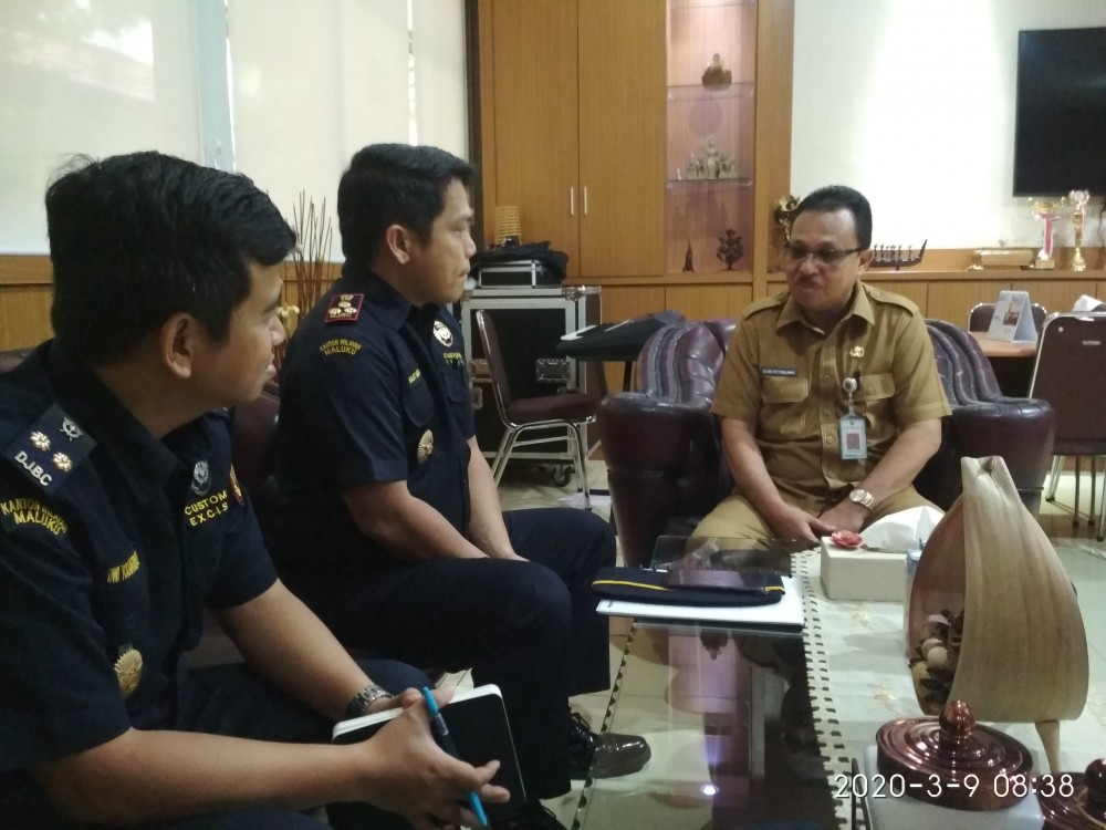 Bertempat di Ruang Kepala Disperindag Provinsi Maluku (9/03), Kepala Kantor Bea Cukai Ambon Saut Mulia beserta Plh. Kepala Seksi PKCDT Dwi Yogo Hardianto berkesempatan mengunjungi Kantor Disperindag Provinsi Maluku yang disambut Kepala Dinas Perindustrian dan Perdagangan Provinsi Maluku, Elvis Pattiselanno dan didampingi Kabid Perdagangan Luar Negeri, Syarif Hidayat.