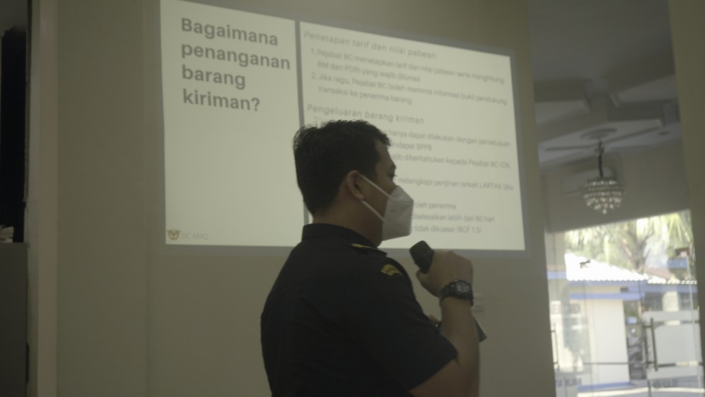 Dalam pemaparan yang diberikan, Usman menyampaikan mengenai dasar hukum impor barang kiriman, kemudian penanganan terhadap barang kiriman, menentukan tarif dan nilai pabean, larangan dan pembatasan terhadap barang barang tertentu dan bagaimana cara melacak atau tracking barang kiriman.
