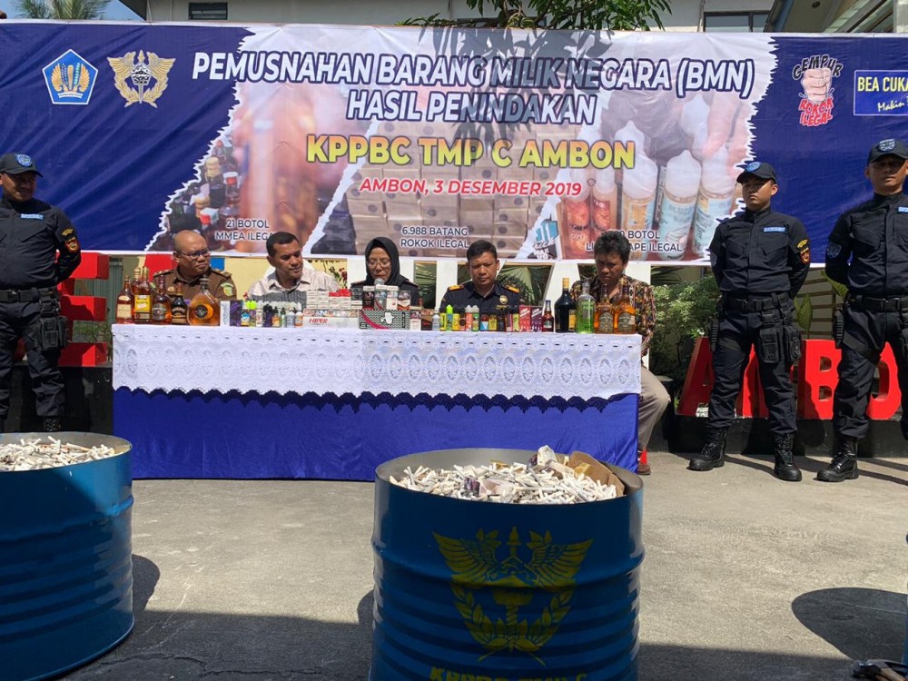 Kepala Kantor Pengawasan dan Pelayanan Bea dan Cukai Ambon, Yanti Sarmuhudayanti,menuturkan bahwa dalam menjalankan fungsi pengawasan, pihaknya terus berupaya secara maksimal untuk memastikan bahwa barang-barang yang beredar dipasar merupakan barang yang legal dan tidak membahayakan masyarakat.
