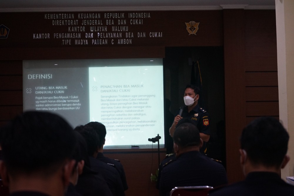 Ambon (26/10/2022) Seperti biasa pagi ini Bea Cukai Ambon kembali melaksanakan kegiatan in house training, kali ini tema yang diambil tentang penagihan di DJBC yang dibawakan oleh Kepala Seksi Perbendaharaan M Yusuf Nasution yang biasa dipanggil Yunas.