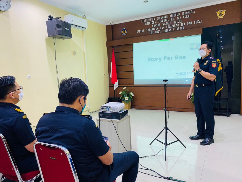 Ambon 12 Juli 2022, Selasa pagi ini, kali pertama Kepala Kantor Bea Cukai Ambon membawakan stori par bae, program Bea Cukai Ambon untuk saling mengingatkan pentingnya integritas, kedisiplinan ataupun pesan-pesan yang baik kepada pegawai di pagi hari. Bulan Juli ini setiap selasa pagi ada kegiatan stori par bae. Mengawali stori par bae pagi ini dimulai dengan Quotes of the day dari Kepala Kantor Bea Cukai Ambon R.Teddy Laksmana “ Rule your mind or it will rule you” Imbuh Teddy.