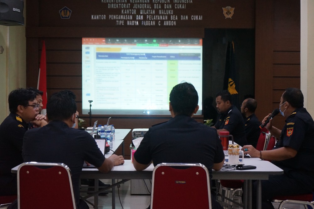 Kegiatan senam pagi selesai kemudian dilanjutkan dengan DKO bulan Desember 2022 yang dilaksanakan di ruang Masohi Bea Cukai Ambon. Dalam kesempatan ini Bea Cukai Ambon membahas capaian hasil kinerja sampai dengan bulan Desember 2022 serta membahas isu-isu strategis yang akan dilaksanakan kedepannya. Dan secara marathon dilanjutkan dengan rapat monitoring dan evaluasi Tim Pembangunan Zona Integritas menuju WBBM.