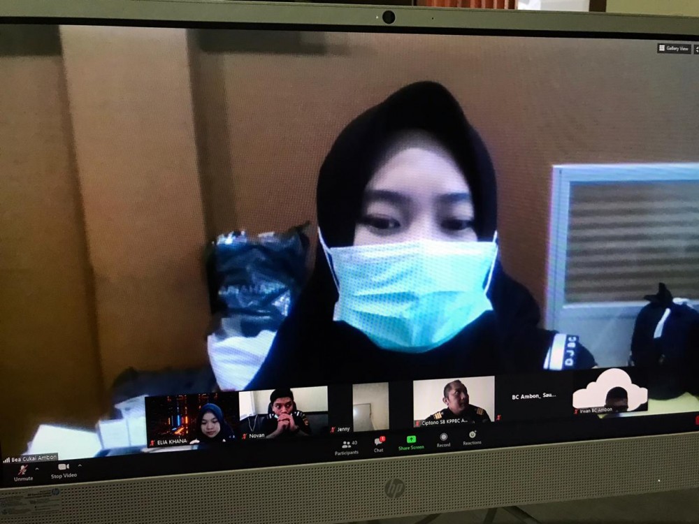 (Ambon - Senin, 23 November 2020) Tepat pukul 08.00 WIT, sharing session terkait pengawasan dan pelayanan ekspor melalui Bandar Udara Pattimura Ambon dimulai, pemateri kali ini dari tim PKCDT (Pelayanan Kepabeanan dan Cukai dan Dukungan Teknis) yang dilakukan secara daring. Dengan diangkatnya tema Pengawasan dan Pelayanan Ekspor Bandara, diharapkan semua pegawai Bea Cukai baik yang bertugas di Seksi PKCDT maupun tidak, dapat memahami dan menangani kegiatan ekspor, karena ini merupakan tanggung jawab bersama dan tidak menutup kemungkinan suatu ketika rekan-rekan di luar seksi PKCDT juga mendapat penugasan pelayanan ekspor.