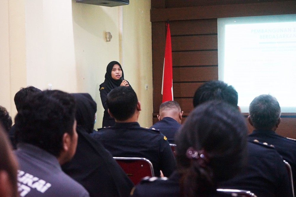 Cahyani memaparkan definisi zona integritas, wilayah bebas korupsi, wilayah birokrasi bersih melayani, dasar hukum PEMBANGUNAN ZONA INTEGRITAS, kerangka logis, Kondisi yang Ingin Dicapai pada Area Manajemen Perubahan, Komponen Pengungkit, Aspek Pemenuhan Bidang Manajemen Perubahan dan Aspek Reform Bidang Manajemen Perubahan.