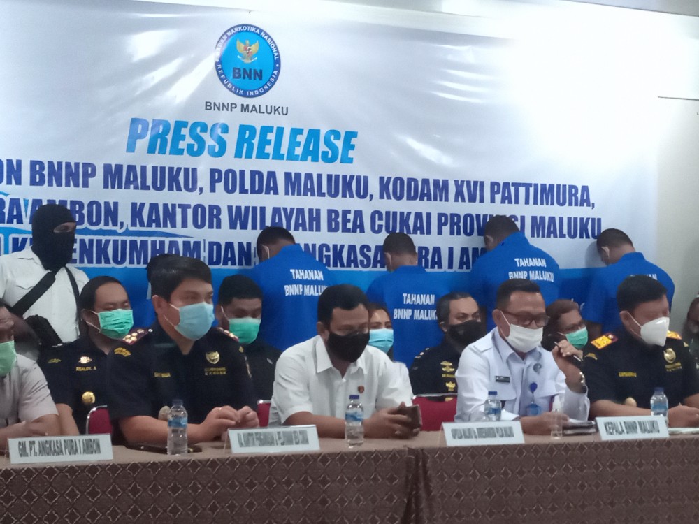 Kamis (17-12-2020) – Bertempat di Gedung Keuangan Negara Ambon digelar Press Release BNNP Maluku, yang merupakan joint operation bentuk sinergi semua komponen baik dari BNNP Maluku, Kodam XVI Pattimura, Polda Maluku, Lanud Pattimura, Kemenkuham Propinsi Maluku, Bea Cukai dan PT. Angkasa Pura I Ambon.