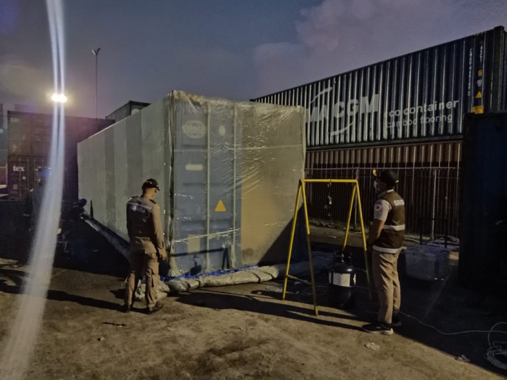 Dan disinilah muatan ekspor Pala dari Ambon dipindah ke kontainer International. Tapi bukan tanpa syarat, semua barang yang ada didalam eks kontainer lokal harus dipindah semua ke kontainer International sesuai yang diberitahukan pada dokumen ekspor (PEB). Peran rekan-rekan Bea Cukai Tanjung Perak sangat membantu, dan fumigasi langsung diawasi rekan-rekan Karantina Pertanian Ambon yang berkolaborasi dengan BBKP Surabaya. Sinergitas tanpa batas untuk ekspor menuju Indonesia lebih maju.
