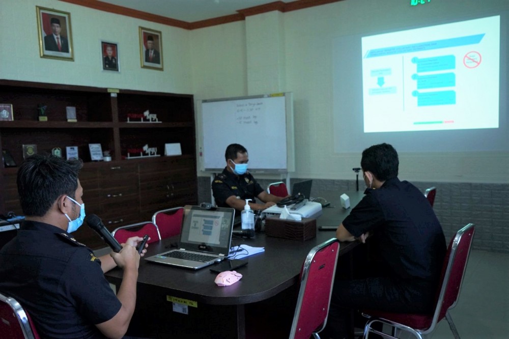 Kepala Seksi Perbendaharaan Bea Cukai Ambon M Yusuf Nasution yang kali ini menjadi pemateri, menyampaikan sosialisasi terkait PMK 201/PMK.04/2020 tentang deklarasi inisiatif (voluntary declaration) dan pembayaran inisiatif (voluntary payment).