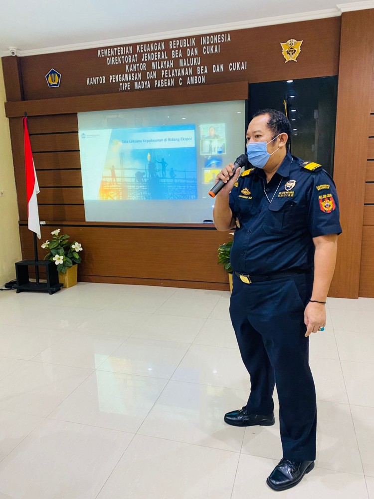 Ambon (24/08/2022) Pagi ini Bea Cukai Ambon mengadakan In House Training terkait Tata Laksana Kepabeanan di Bidang Ekspor. IHT dibawakan oleh Kepala Seksi PKCDT Ciptono Setia Budi.