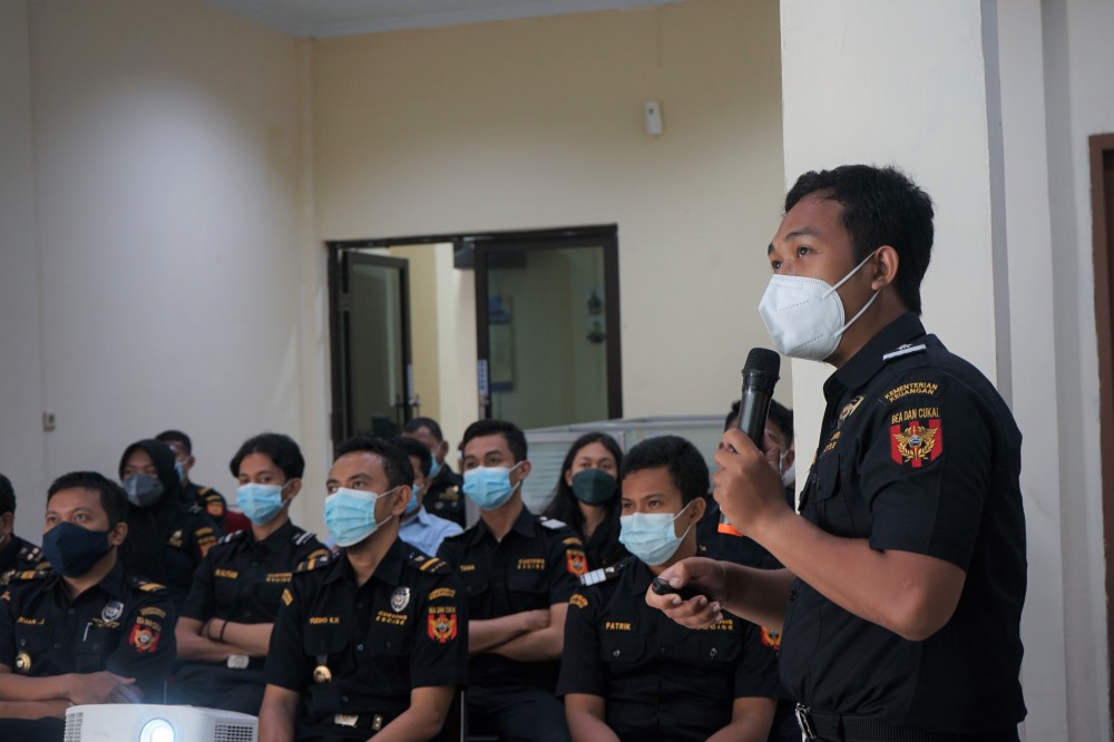 Mochammad Dimas S atau yang akrab disapa Dimas pegawai dari seksi Pelayanan Kepabeanan dan Cukai Dukungan Teknis (PKCDT) menjadi pemateri pada acara in house training kali ini. Membawakan materi kawasan berikat Dimas menjelaskan mulai dari apa itu tempat penimbunan berikat, fasilitas apa saja yang didapat, pengertian kawasan berikat dan syarat apa saja yang diperlukan agar memperoleh izin mendirikan kawasan berikat.